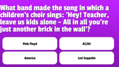 If you can answer "What colour did Elvis dye his hair?" and maybe even "What band made the song in which a children's choir sings: 'Hey! Teacher, leave us ki.." there is a good chance that you're going to beat the average score of 4/10 in this trivia quiz