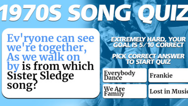 If you can answer "Who sang this song : "Copacabana (At the Copa)" back in 1979?" and maybe even "Who sang this song : "Don't Go Breaking My Heart"?" there is a good chance that you're going to beat the average score of 7/10 in this 1970s songs quiz