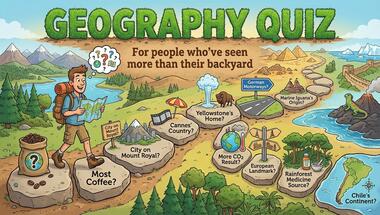 If you can answer "Yellowstone Park is located in which country?" and maybe even "Motorways in Germany are called what?" there is a good chance that you're going to beat the average score of 7/10 in this Geography quiz