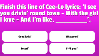 4/10 is the score to beat in this trivia quiz to put yourself over the average quiz taker. But you're probably going to be able to answer questions "Joe and Jack are the characters in which song?" and "What's the real name of the song with the lyrics "Sugar pie, honey bunch"?" easy!