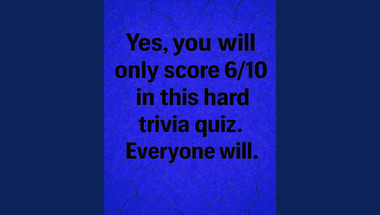7/10 is the score to beat in this General knowledge quiz to put yourself over the average quiz taker. But you're probably going to be able to answer questions "Finish this line of Led Zeppelin lyrics: 'And she's buying a stairway to ___________'.." and "The definition of "an airship" best fits this word?" easy!