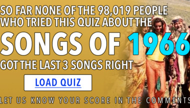 7/10 is the score to beat in this 1960s songs quiz to put yourself over the average quiz taker. But you're probably going to be able to answer questions "The hit lists of 1966 contained this song from The Beatles" and "The Beach Boys had a hit with this song in 1966" easy!