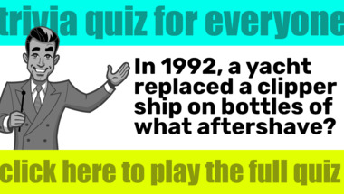 In this fun trivia quiz we're going to ask questions like "Which bird can lose its last letter to turn it into a popular figure?" and "In 1992, a yacht replaced a clipper ship on bottles of what aftershave?".
