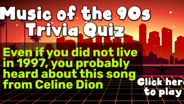 5/10 is the score to beat in this 1990s Hits quiz to put yourself over the average quiz taker. But you're probably going to be able to answer questions "One of the most popular hits in 1993 was this song performed by Billy Ray Cyrus" and "Even if you did not live in 1997, you probably heard about this song from Celine Dion" easy!