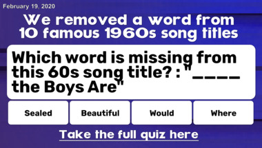 Quiz : We removed a word from 10 famous 60s song titles