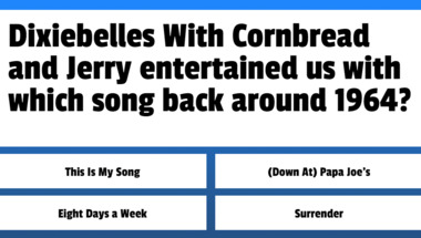 5/10 is the score to beat in this 1960s Songs quiz to put yourself over the average quiz taker. But you're probably going to be able to answer questions "Chubby Checker entertained us with which song back around 1961?" and "Dixiebelles With Cornbread and Jerry entertained us with which song back around 1964?" easy!