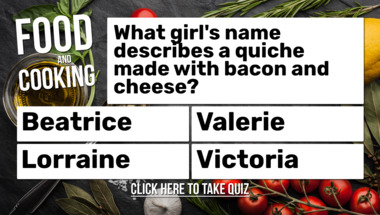 6/10 is what people on average are scoring in this trivia quiz so far. Are you ready to answer questions like "Which German city has a thin sausage named after it?" and "What girl's name describes a quiche made with bacon and cheese?"