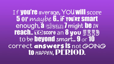 If you can answer "What is a 7 letter word meaning "to make brilliant or shining"?" and maybe even "Which continent does the River Nile flow?" there is a good chance that you're going to beat the average score of 6/10 in this trivia quiz