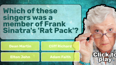 Look forward to questions like "Which of these singers was a member of Frank Sinatra's 'Rat Pack'?" and "A group of musicians playing instruments while walking in sync can be called what?"