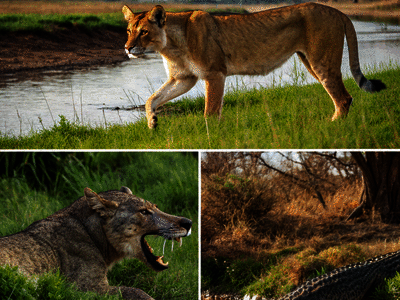 Which species best matches this description: "meat-eating animal that hunts and scavenges prey"?
